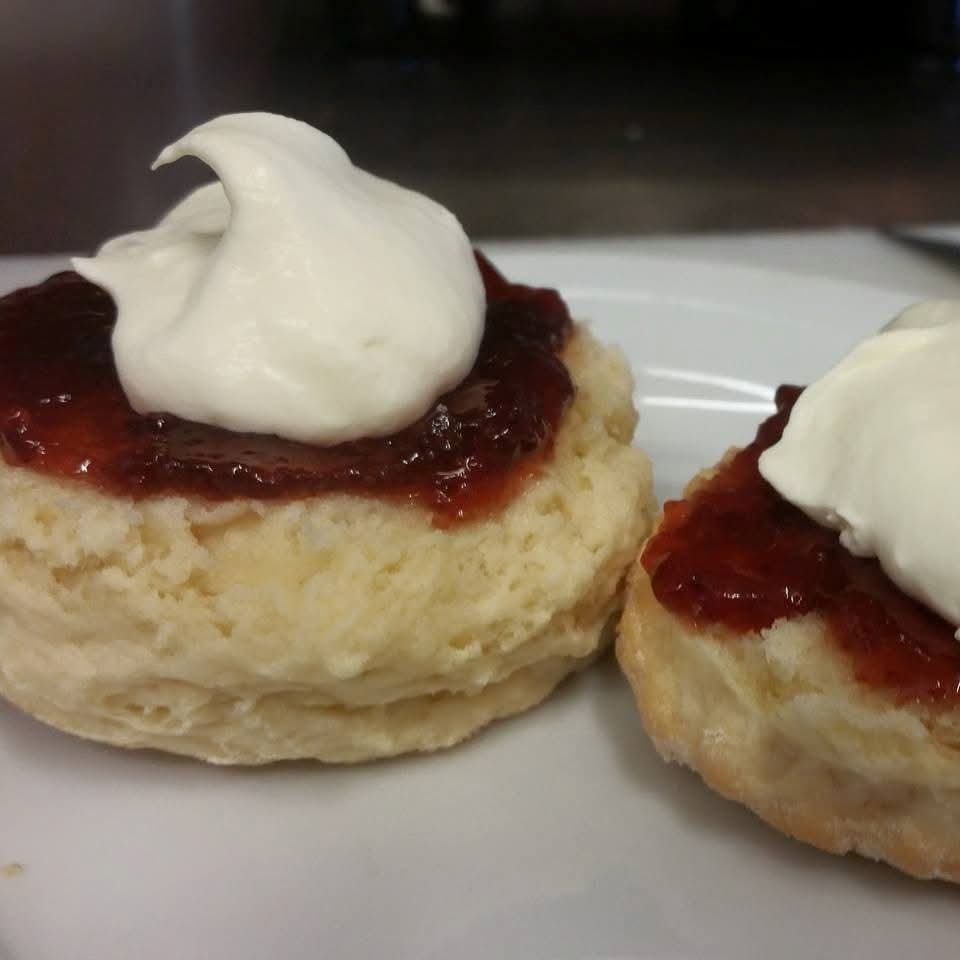 Mix self-raising flour and thickened cream until it resembles a crumble. Add the lemonade then knead into a scone dough. The lemonade gives the scones a light and fluffy texture.